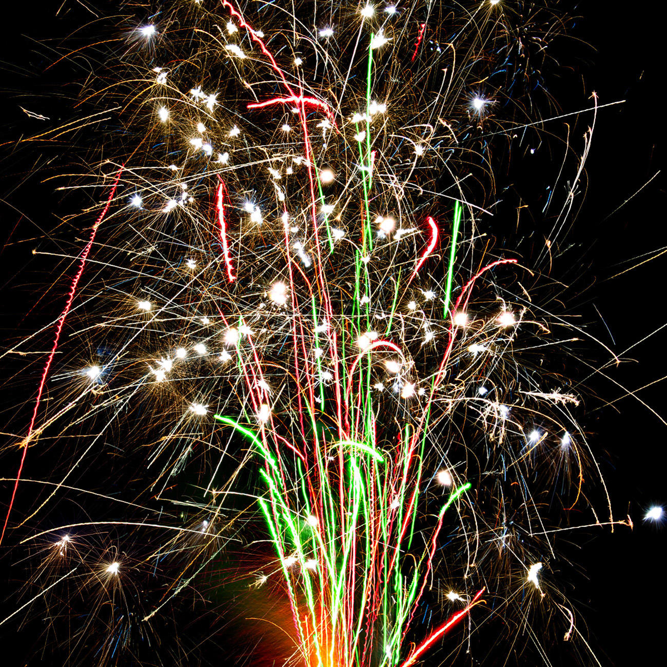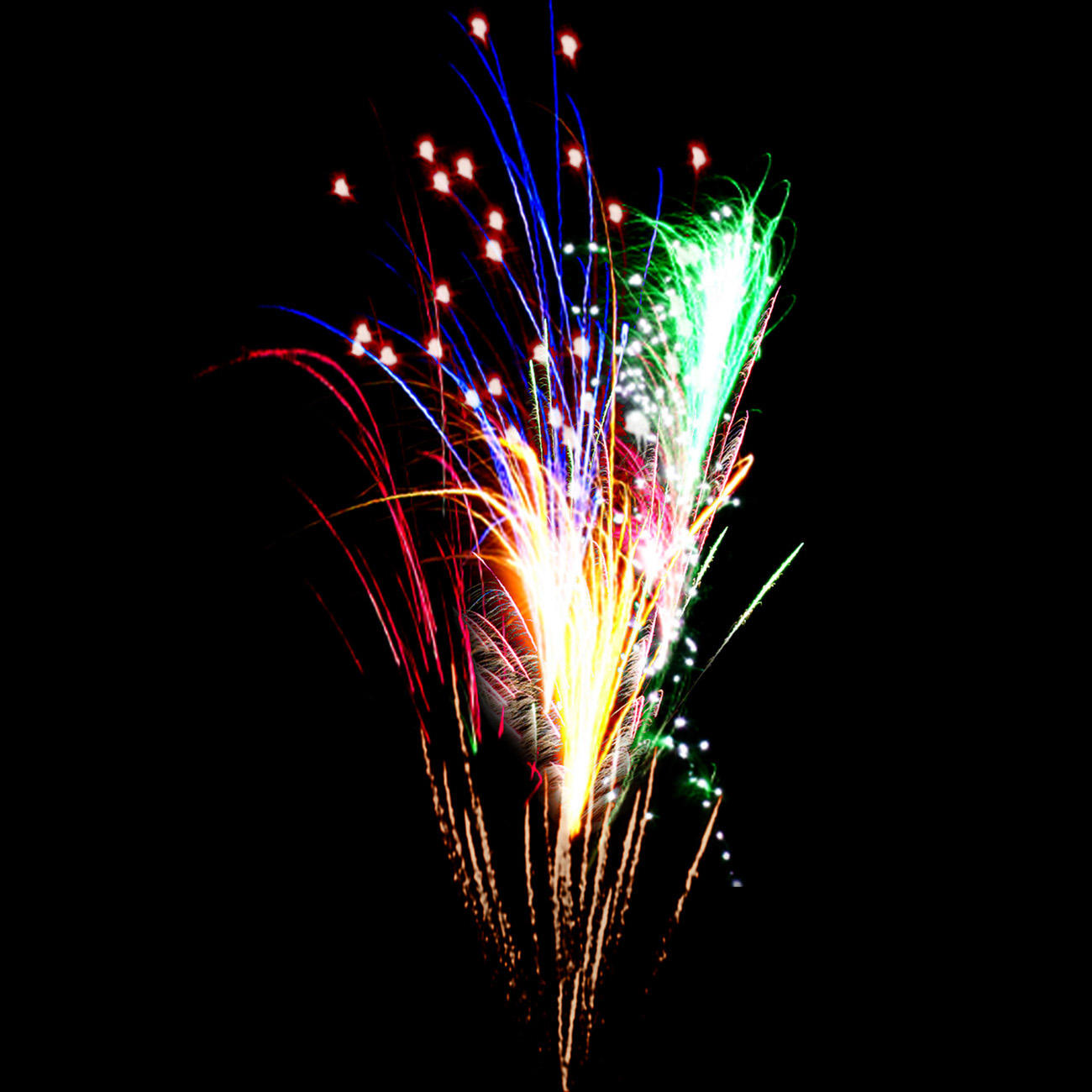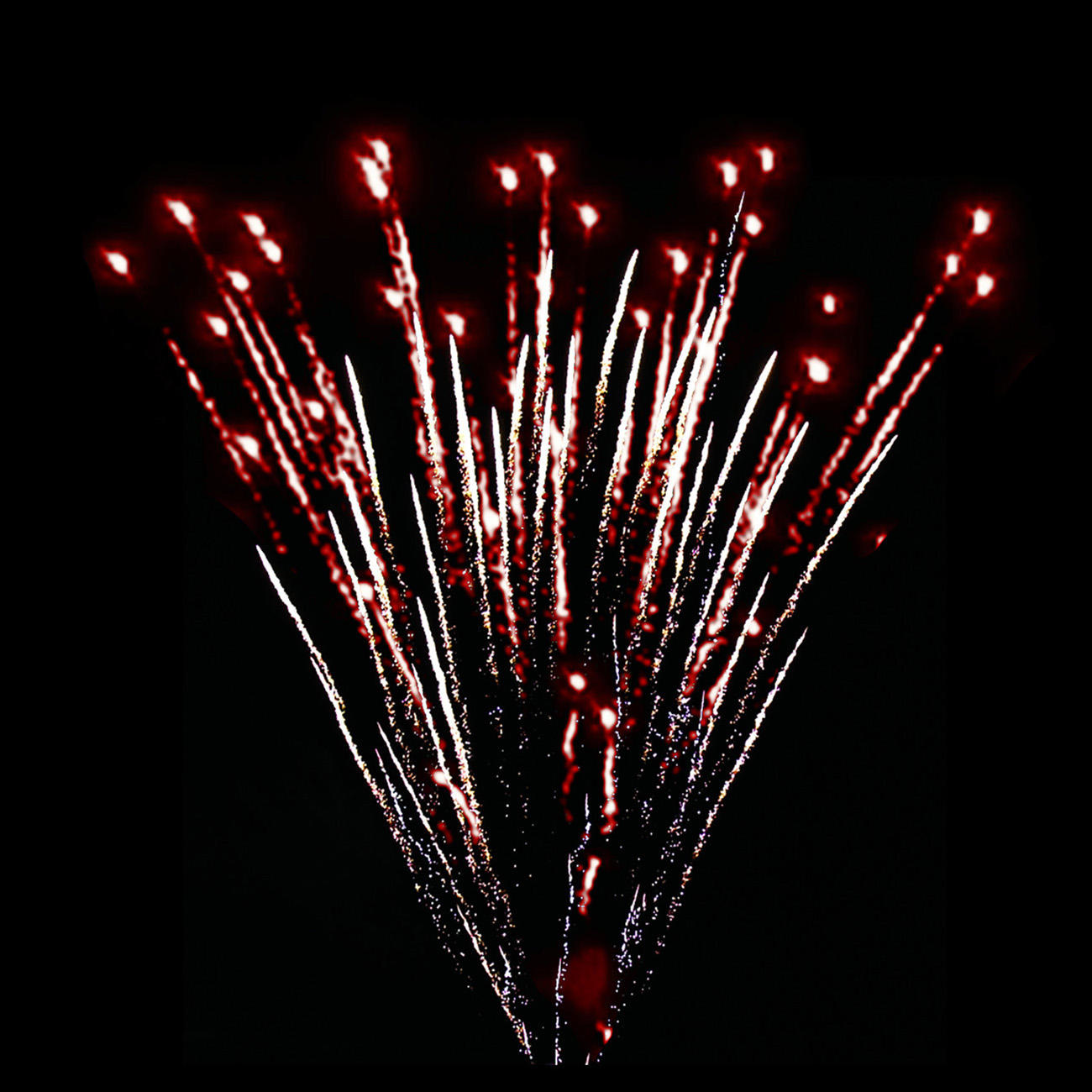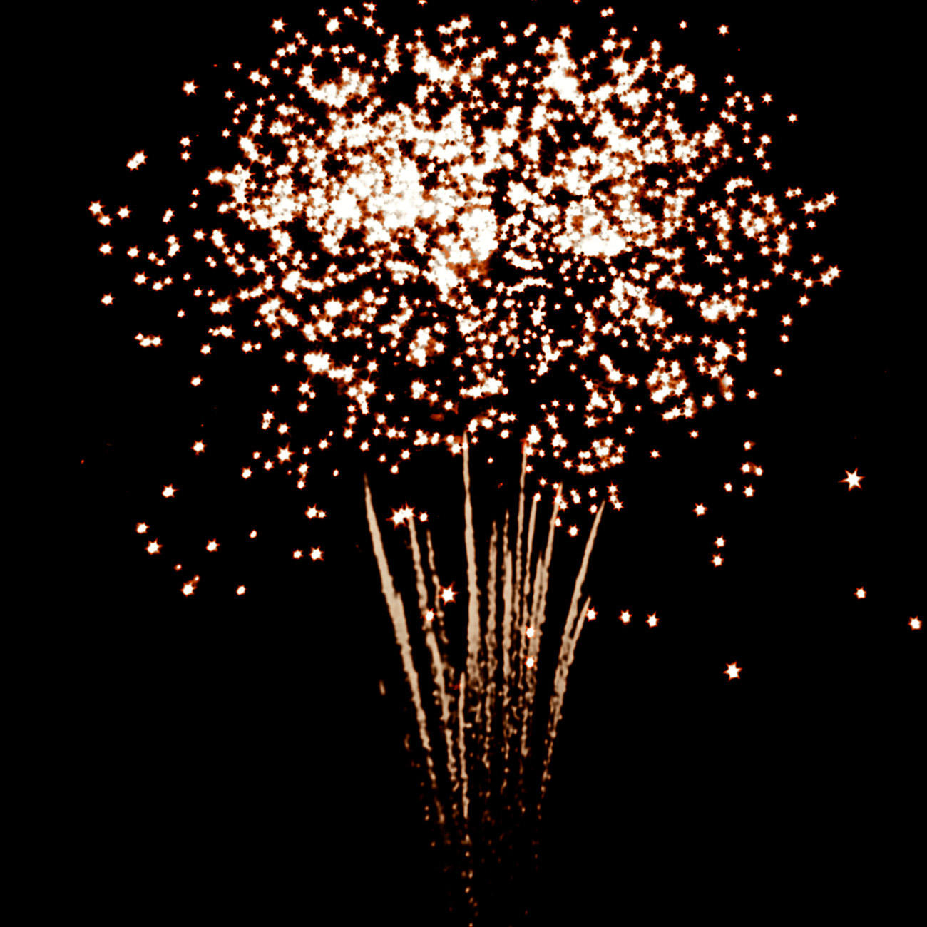 8. Красные звезды с пышными хвостами (кокос) и облако золотого треска (трещащая хризантема).