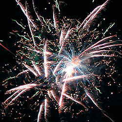 2. серебряных форсов с зелеными огнями на концах и трещащих огней.