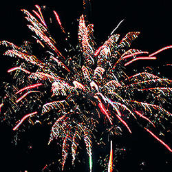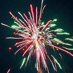 1. разлетающихся трещащих зеленых искр и красных огней;