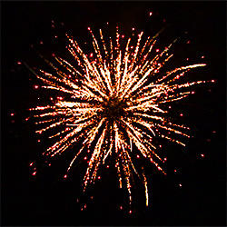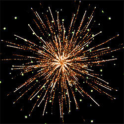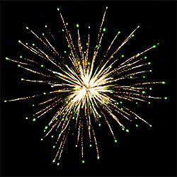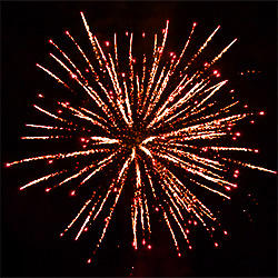 4 эффекта. Разноцветные кометы разрываются сферами из: золотых форсов с красными огнями на концах, золотых форсов с зелёными огнями на концах, золотых форсов с белыми мерцающими огнями на концах, золотых форсов и множества трещащих сфер.