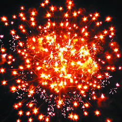 1. Красные звезды с пышными хвостами (кокос) и белое мерцание.