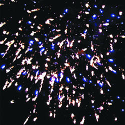 6. ЗАЛП: хаотично разлетающиеся серебряные звезды (рыбки) и синие звезды.