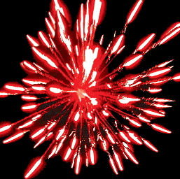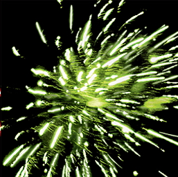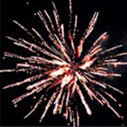 Разноцветные кометы разрываются сферами из: красных огней и золотых форсов; зеленых огней и золотых форсов; синих огней и золотых форсов.
