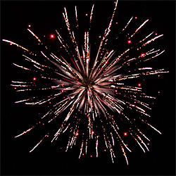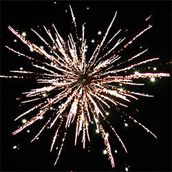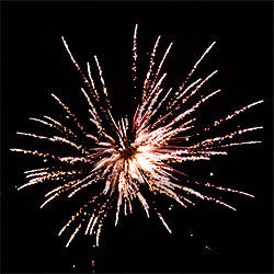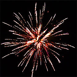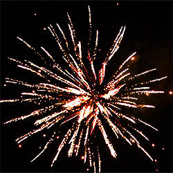 3 эффекта. Разноцветные кометы разрываются сферами из: золотых форсов и белых мерцающих огней, золотых форсов и красных мерцающих огней, золотых форсов и золотых мерцающих огней.