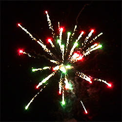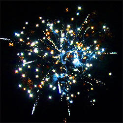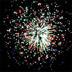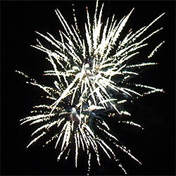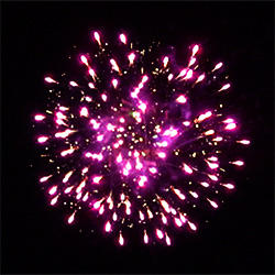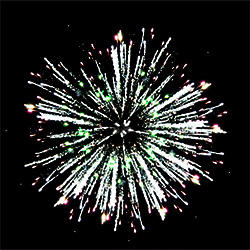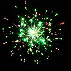 5 эффектов. Разноцветные кометы разрываются сферами из: красных, синих и белых мерцающих огней, золотых форсов с красными и зелёными огнями на концах, фиолетовых, зелёных и золотых мерцающих огней, серебряных форсов с красными и зелёными огнями на концах, золотых форсов.