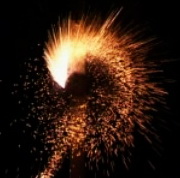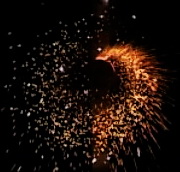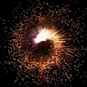 Вращается, образуя круг радиусом до 2 м красного, зеленого и белого цветов, разбрасывает золотые искры.