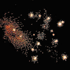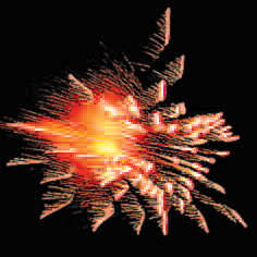 Набор фейерверков с различными эффектами: взлетают, разбрасывая огненные искры, разрываются красным, зеленым или трещащим салютами.