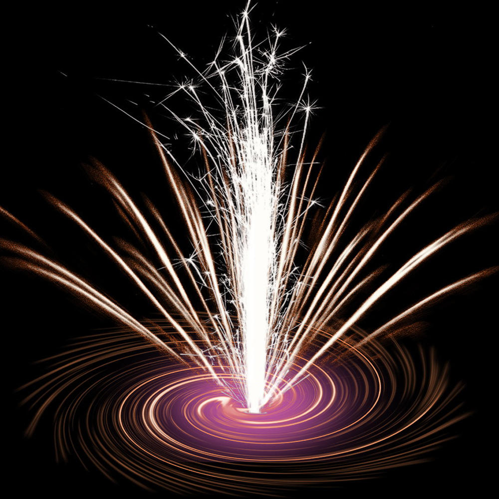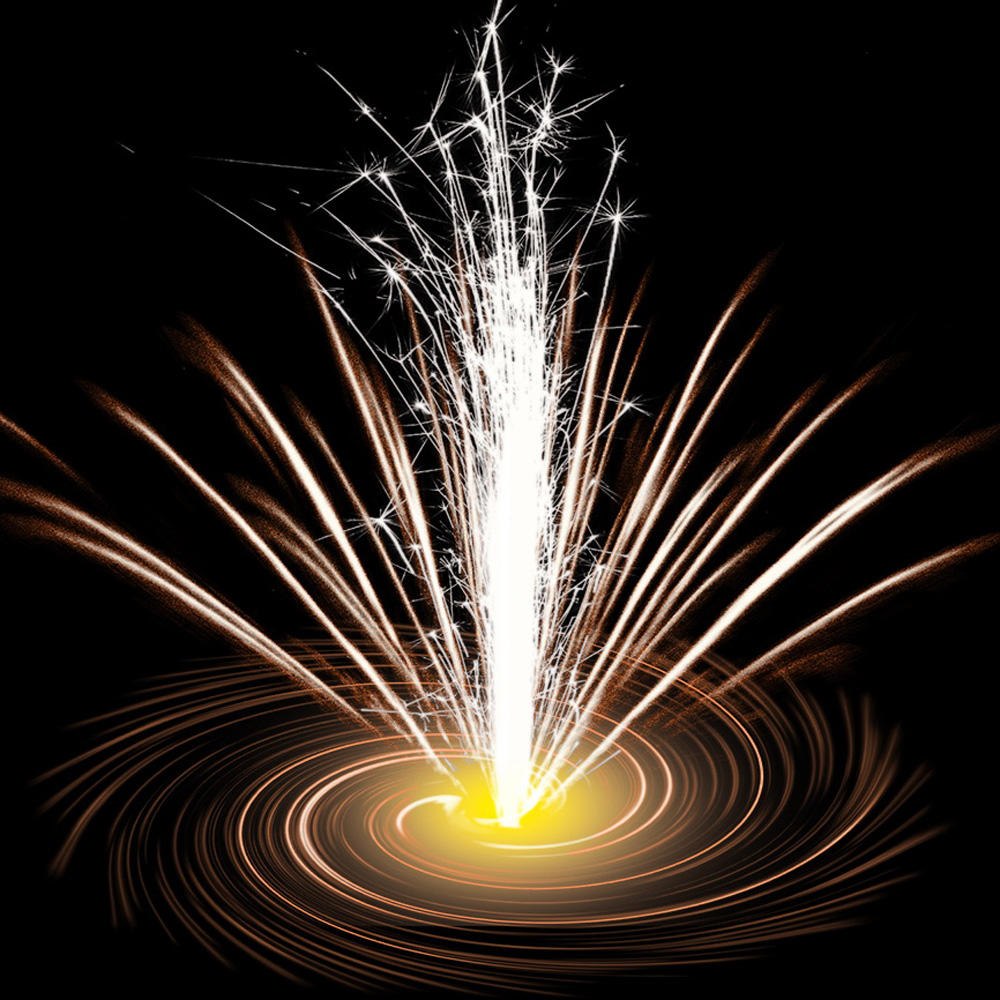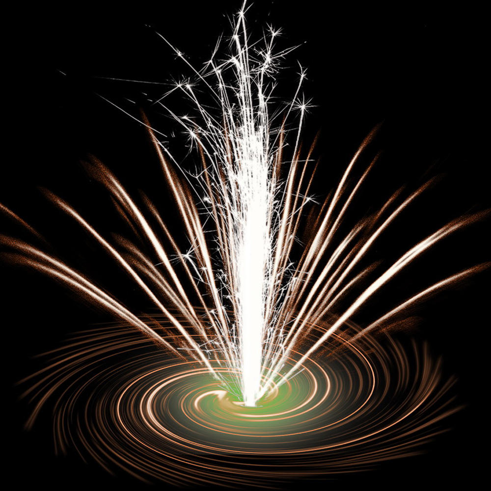 Сначала работает поток серебряных искр, затем раскручивается, выбрасывая золотые искры параллельно земле, и светится зелёным, жёлтым и фиолетовым огнем, потом разрывается множеством серебряных трещащих искр и в конце светится оранжевым огнем и золотыми искрами.