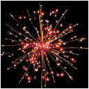 Вылетающие последовательно ракеты разрываются сферами из: синих и золотых огней; золотых форсов с серебряными искрами и золотых огней; красных огней; серебряных форсов и серебряных мерцающих огней; лимонных огней и трещащих искр; золотых форсов с серебряными искрами и красных огней.
