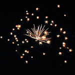 Разрывается салютом с мерцанием и треском.