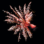 Разрывается красным салютом с переходом в серебряные трещащие огни.