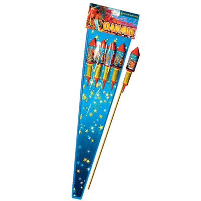 Набор ракет с различными эффектами: разноцветные разрывы.