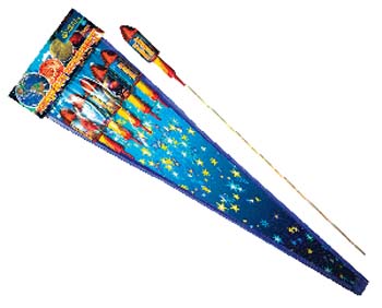 Набор ракет с различными эффектами: разрывы трещащими хвостами, салютами с цветными огнями на концах или разноцветными салютами.