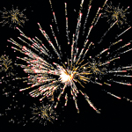 Двойной разрыв: разрыв красными звездами с искристыми хвостами, трещащие звезды с мерцанием.