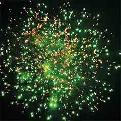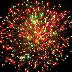 Красные, зеленые и золотые трещащие звезды. Зеленые звезды с белыми хвостами и облако треска. Красные, синие звезды и облако треска.