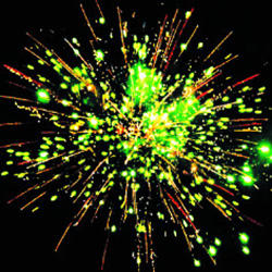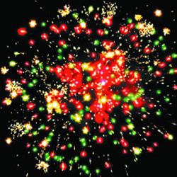 2. Красно-зелено-белая мерцающая сфера (мерцающий пион) и облако треска (трещащий дождь).