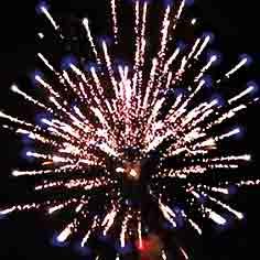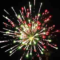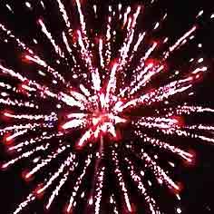 3. Серебряные звезды с пышными хвостами (кокос), красные звезды и облако треска (трещащий дождь).