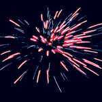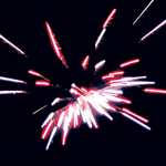 Огромная супер-римская свеча (труба) с редким эффектом: 6 голубых звезд разрываются красными и синими звездами, голубыми и красными сферами, синими сферами с искристыми хвостами.