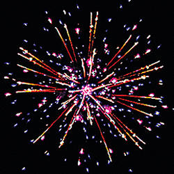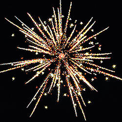 2. фиолетовых, синих огней и золотых форсов с трещащими искрами;