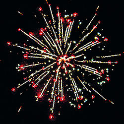3. золотых форсов с белыми мерцающими огнями на концах и множества трещащих сфер.
