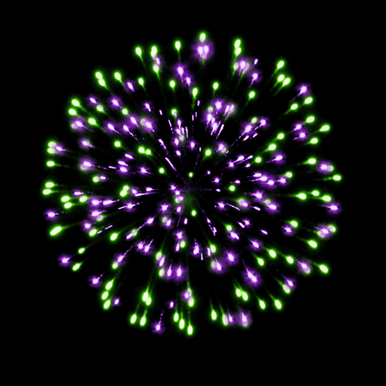 1. фиолетовых и зеленых огней.
