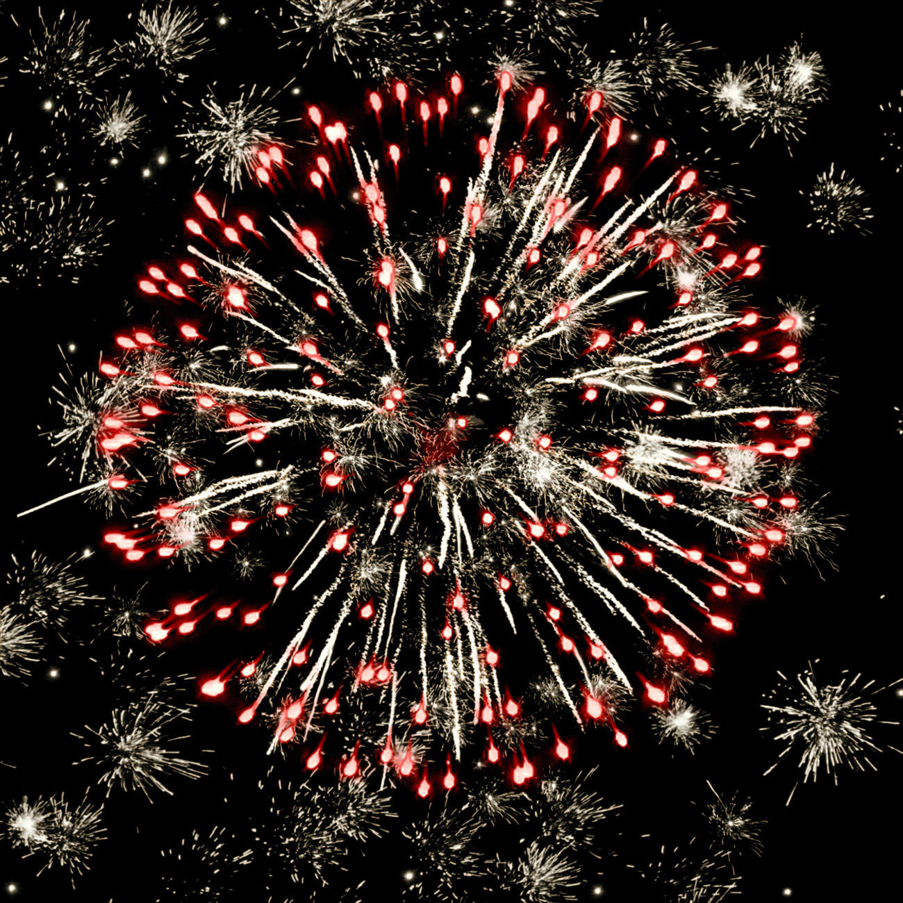 2. серебряных форсов с красными огнями на концах и трещащих огней.