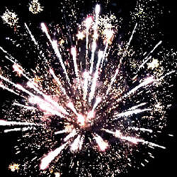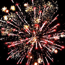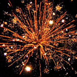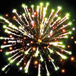 8. Красные звезды с пышными хвостами (кокос) и облако золотого треска (трещащая хризантема).
