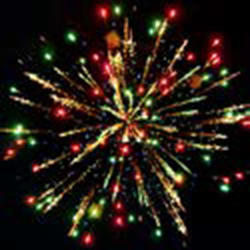 2. красных, зеленых , синих огней и золотых форсов с трещащими искрами;
