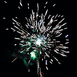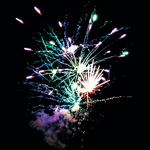 Восемь комет с искристыми хвостами разрываются мерцающими, разноцветными сферами с треском.