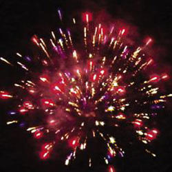 4. Красно-синяя сфера (пион) и облако треска (трещащая хризантема).
