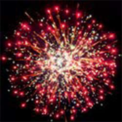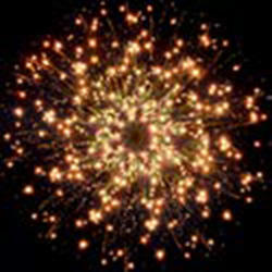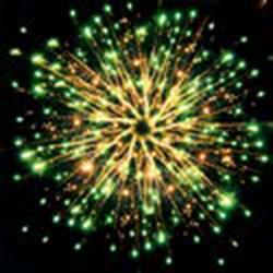 3. золотых форсов с красными и зелеными огнями на концах, трещащих огней.