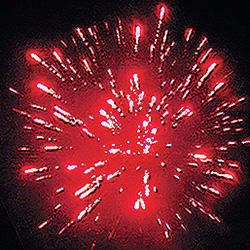 3. золотых форсов с красными огнями на концах и трещащих огней.