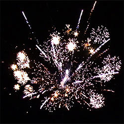 3 эффекта. Разноцветные кометы разрываются сферами из: золотых форсов с синими огнями на концах и зелёных мерцающих огней, серебряных форсов, золотых форсов с жёлтыми огнями на концах, множества трещащих сфер, золотых форсов.