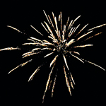 5 выстрелов, разрывающихся ниспадающими золотыми звездами с искристыми хвостами.