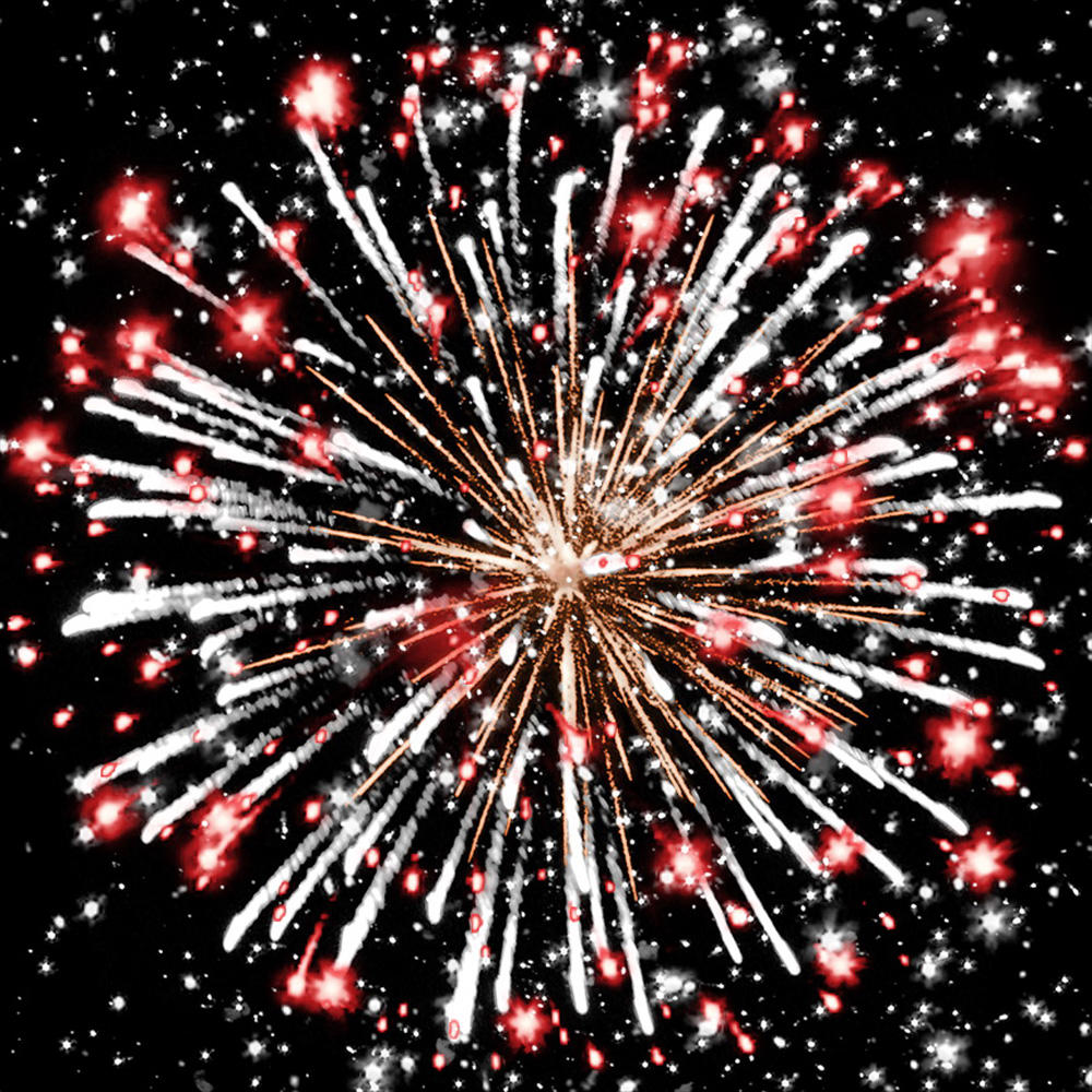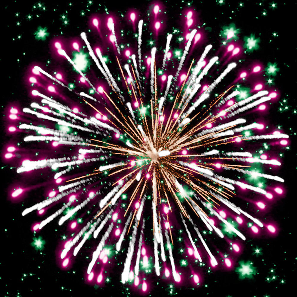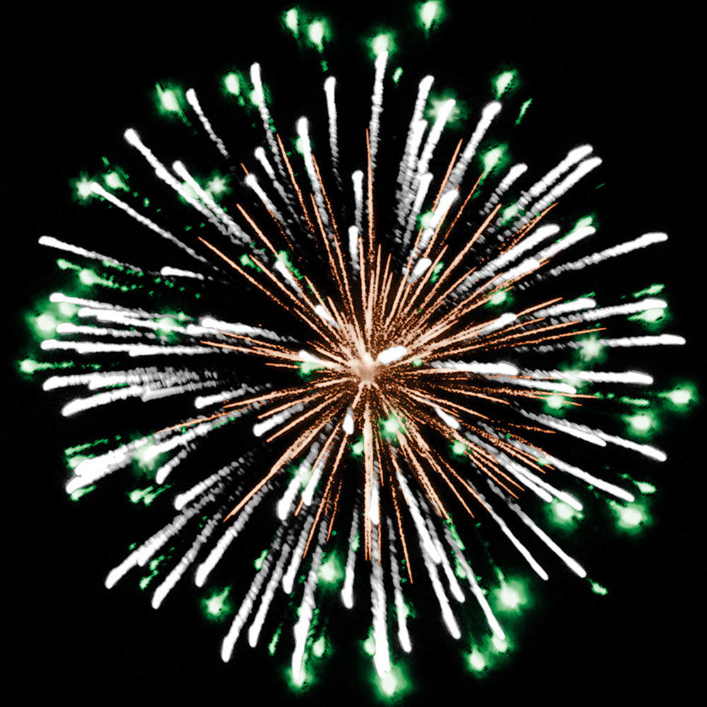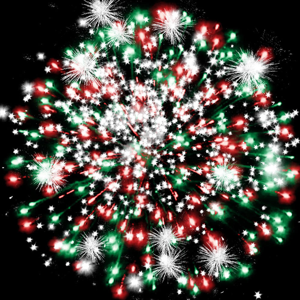 6. красных и зелёных огней, множества серебряных трещащих искр;