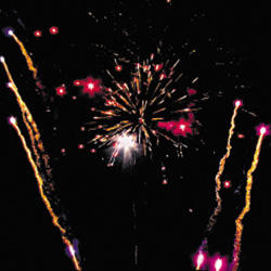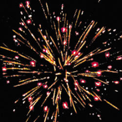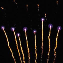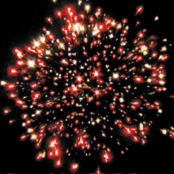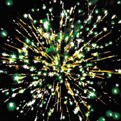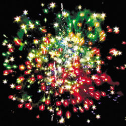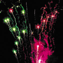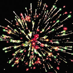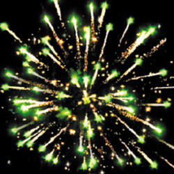 15. Веер Z-формы: зеленые и красные кометы с трещащими хвостами и свист.
