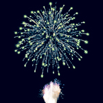 Фантастическая батарея фейерверков! Двухуровневый фейерверк-салют: снизу огромный сноп красных, синих, зеленых искр, сверху большие разрывы золотых хризантем с множеством серебряных мерцающих, шуршащих звезд.