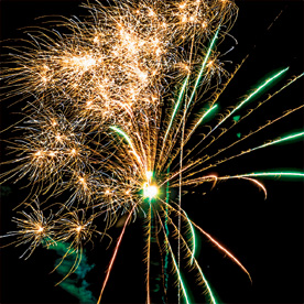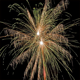 Разноцветные кометы разрываются сферами из: серебряных форсов и зеленых мерцающих огней; серебряных форсов и золотых мерцающих огней; красных огней с серебряными форсами и трещащих огней; зеленых огней с серебряными форсами и трещащих огней; синих огней; золотых форсов; фиолетовых огней с серебряными форсами и зеленых мерцающих огней (залп); серебряных форсов, зеленых мерцающих и золотых мерцающих огней (залп); зеленых огней с золотыми форсами и красных мерцающих огней (залп); зеленых огней с золотыми форсами и белых мерцающих огней (залп); красных огней с золотыми форсами и трещащих огней (залп). зеленые и золотые падающие букетики.