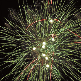 Эта батарея салютов подарит настоящее многоцветное шоу! Яркие кометы взмывают вверх и раскрываются в крупные сферы, переливаясь алыми и белыми мерцающими огнями, изумрудными вспышками и пурпурными форсами с искрящими хвостами.