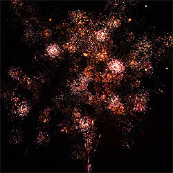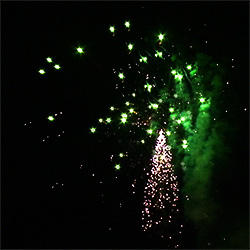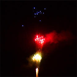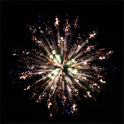 21 эффект. 2 уровня. Нижний уровень – букеты из: красных огней, зелёных мерцающих огней, синих огней, трещащих огней, золотых форсов с серебряными трещащими искрами, искристых серебряных форсов с ослепительными сферами из: белых огней на концах и оглушительным звуком. Разноцветные кометы, спиралеобразные трассы, свистящие элементы разрываются сферами из: красных и трещащих огней, зелёных огней и множества трещащих сфер, белых огней и множества трещащих золотых искр, золотых форсов с красными мерцающими искрами, золотых форсов с серебряными мерцающими искрами, золотых форсов с золотыми мерцающими искрами, красных, зелёных и синих огней, серебряных форсов с красными огнями на концах и трещащих огней, серебряных форсов с зелёными огнями на концах и трещащих огней, серебряных форсов с серебряными огнями на концах и трещащих огней, красных и белых мерцающих огней, синих и золотых мерцающих огней, серебряных искристых форсов и множества золотых трещащих искр, Wвеер: сферы из золотых форсов красных, зелёных и синих огней, золотые форсы переходят во множество трещащих мерцающих искр.