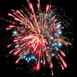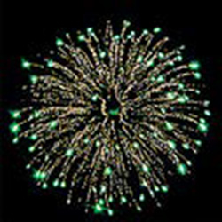 Разноцветные кометы разрываются сферами из: крупных красных и белых мерцающих огней; крупных голубых и золотых мерцающих огней; множества трещащих сфер и серебряных форсов; мерцающих зеленых огней и искристых трещащих форсов; крупных красных огней и множества трещащих сфер; искристых трещащих форсов. Красочная концовка.
