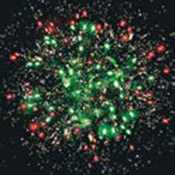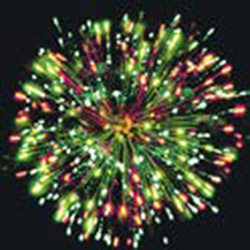 10 эффектов. Разноцветные кометы разрываются сферами из: красных и белых мерцающих огней, синих огней с серебряными рыбками, трещащих огней, фиолетовых и белых мерцающих огней, синих и серебряных мерцающих огней, красных, зеленых и трещащих огней, красных огней с форсами и белых мерцающих огней, зеленых огней с форсами и трещащих огней, пурпурных и зеленых огней, множества трещащих сфер. Красочная концовка.