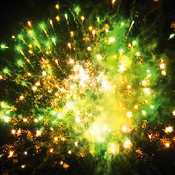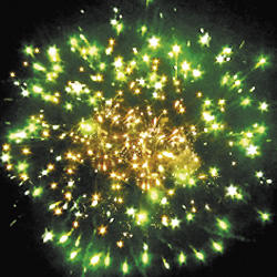 12. Фиолетово- зеленая сфера (пион) и облако золотого треска (трещащий дождь)