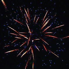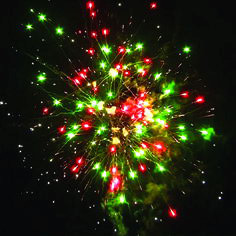 С этим сказочным салютом Вы снова поверите в чудеса. Цветные звезды разрываются сферами красных, зеленых и белых мерцающих звезд, сферой синих звезд и золотыми кометами, фиолетовыми звездами с зеленым мерцанием, золотыми ниспадающими нитями с синими звездами. Красные звезды разрываются облаком трещащих звезд.