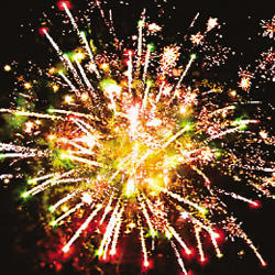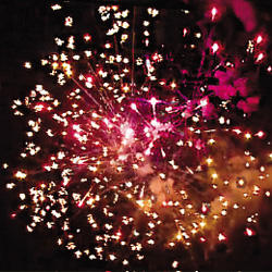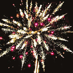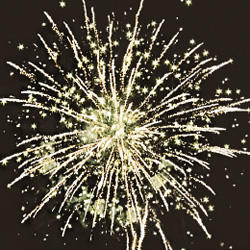 7. Красно-зеленые звезды с пышными хвостами (кокос) и облако золотого треска (трещащий дождь)