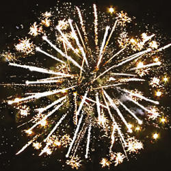 9. ЗАЛП: Множество серебряных ниспадающих нитей (парча) и облако треска (трещащая хризантема).