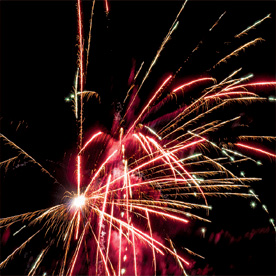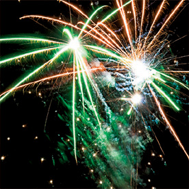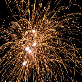 Золотые с серебряными, зелеными, красными, трещащими, шуршащими, разлетающимися искрами трассы разрываются сферами из: оранжевых и зеленых мерцающих огней; красных огней и золотых форсов с серебряными искрами; золотых форсов с красными искрами; красных огней и золотых форсов с трещащими разлетающимися искрами; золотых форсов с золотыми искрами; золотых форсов с шуршащими разлетающимися искрами (залп).