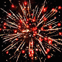 9. Мерцающая красная комета разрывается красными звездами с пышными хвостами (кокос) и белым мерцанием