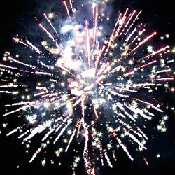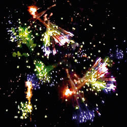 7. Серебряная комета разрывается серебряными звездами с пышными хвостами (кокос) и белым мерцанием