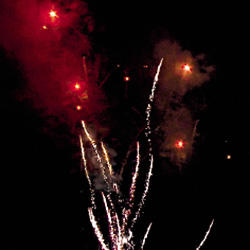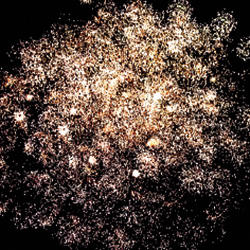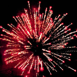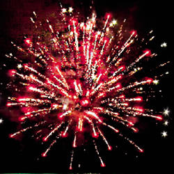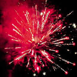 12. Красные звезды с пышными хвостами (кокос) и белое мерцание.